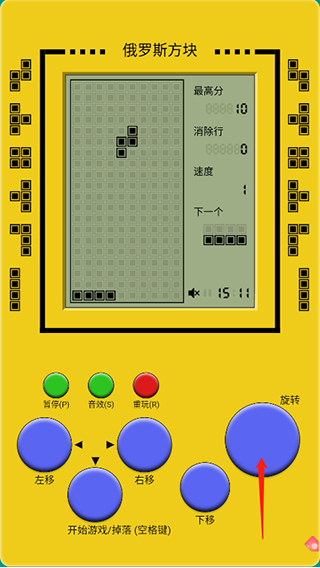 2、支持多种操作方式,包括虚拟键盘与屏幕手势,点击或滑动皆可实现左右移动、旋转与极速下落,满足不同操作习惯。