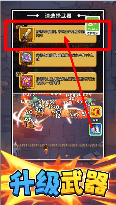 1.选择SSR神级武器:击杀敌人后可选择强化武器,如雷霆飞剑能提高攻击力,是通关高阶BOSS的关键装备之一。