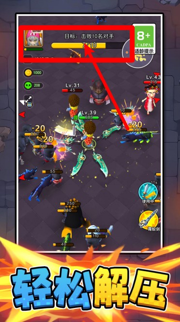 2.任务进度实时追踪:画面上方会显示当前目标进度条,例如“击败10名对手”,进度条会随着击杀数量实时更新状态。