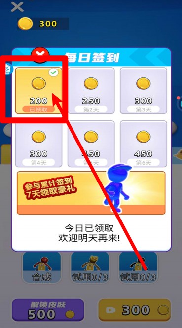 3.每日签到可领取金币奖励,坚持登录还能解锁更多金币福利,用于后续合成升级角色资源超实用。
