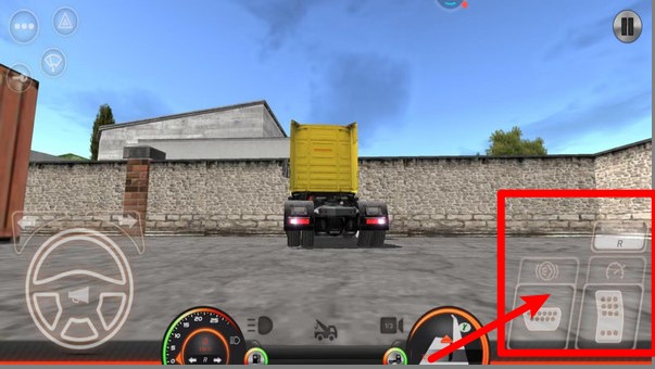 2.右下角的操作区可切换驾驶视角、控制油门刹车或挂挡,玩家需根据路况实时调整操作完成货物运输。