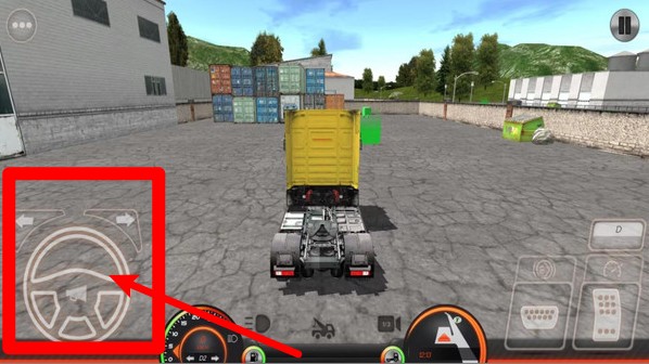 3.左下角方向盘用于控制车辆转向,支持模拟真实驾驶操作手感,是完成转弯、倒车、泊车等关键操控区域。