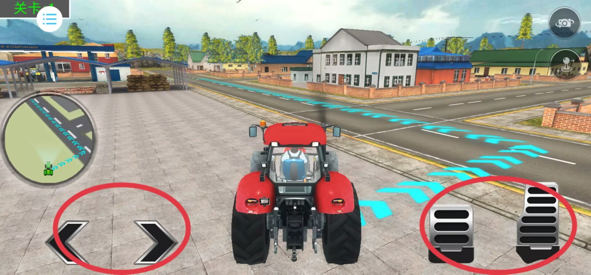 2、跟着地上的箭头提示操作,左下摇杆控制农机方向,右边按钮管前进和停车。