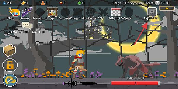 1、进入游戏界面之后,我们点击右上角的【Options】齿轮按钮进入设置。