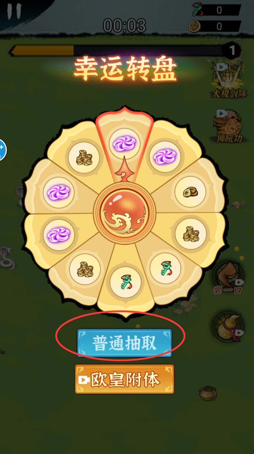 1、点击屏幕任意位置即可开始游戏,探索过程中遇到宝箱可点击开启,有机会获得转盘抽奖等随机奖励内容。