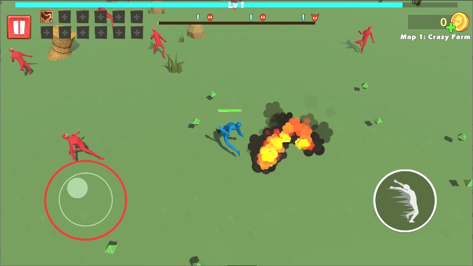 1、滑动屏幕控制角色灵活走位,角色会自动攻击范围内敌人,注意保持安全距离。