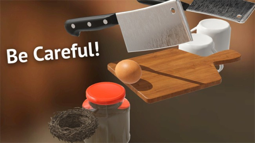 1、玩家需要控制鸡蛋在厨房场景中滚动前进,避开刀具、油渍等危险障碍,安全到达终点巢穴获得胜利。