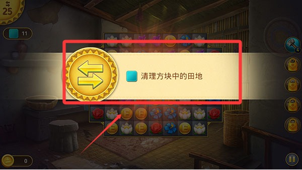 2、第一关的目标很好完成,就是清理蓝色方块中的田地。