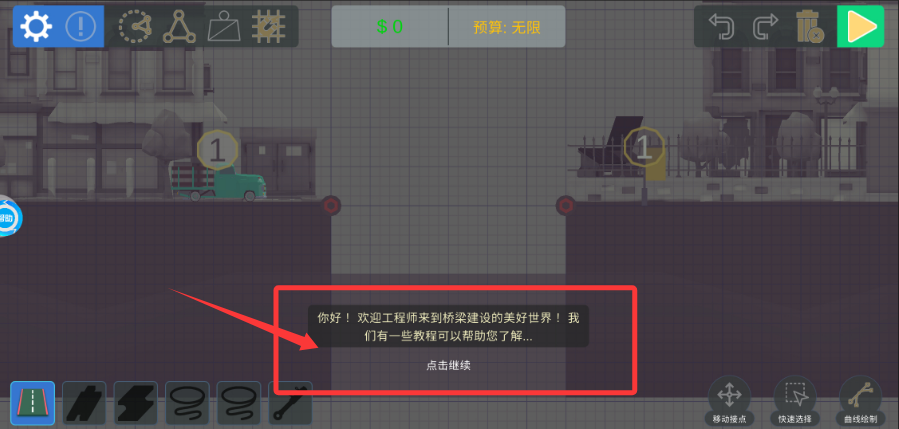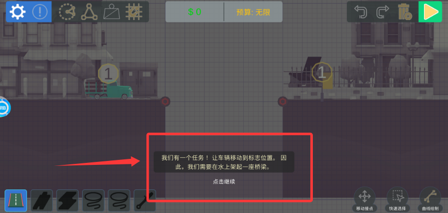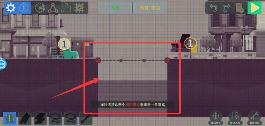 3、通过拖动固定锚点间的连接部件,逐步构建出符合承重要求的桥梁路线,可供车辆行驶。