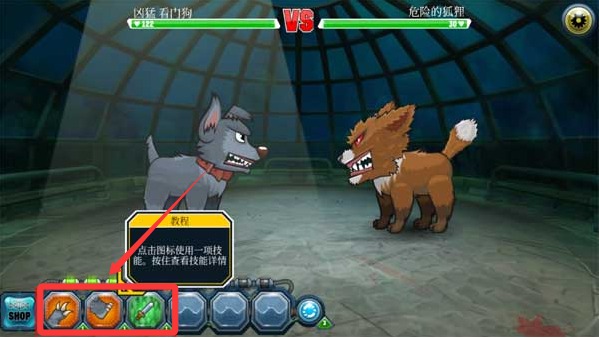 2、战斗开始,我们需要点击左下角的图标来使用其中一项技能,不同技能所使用的情况都完全不一样。