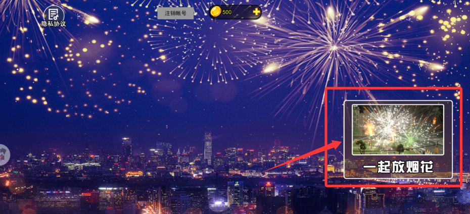 1、启动游戏,挑选心仪的一起放烟花玩法模式,开启烟花盛宴。