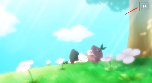 3、点击红箭头指向的按钮,可以快速跳过剧情画面。
