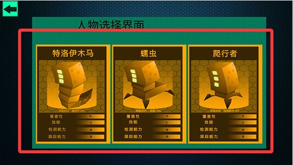 2、然后选择你的黑客病毒角色,不同角色拥有不同的覆盖性、效能、检测能力以及跟踪能力。