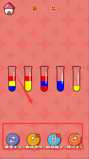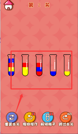 1、开局先观察所有试管的液体颜色分布,理清大致排序思路。优先将颜色单一的液体转移出来,避免后续操作混乱。