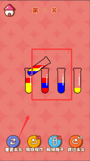 3、遇到卡关时不要急着乱倒,可以重新开始获取新的颜色组合。多尝试不同策略后掌握规律,就能更轻松完成挑战任务。