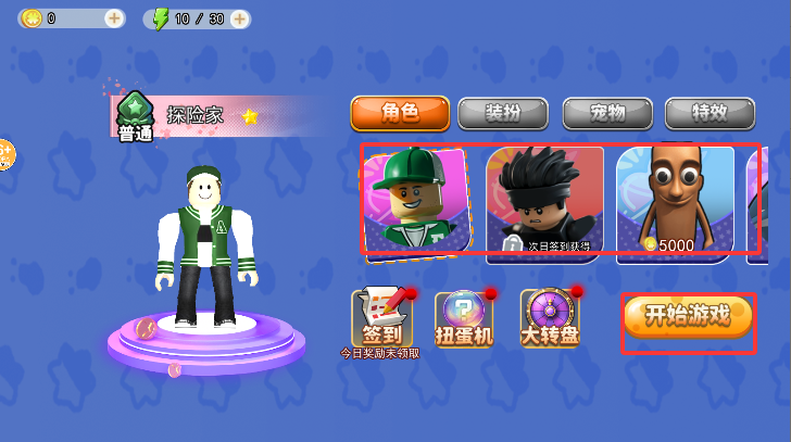 2、进入游戏后,选择一个角色后,点击右下角开始游戏。