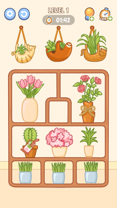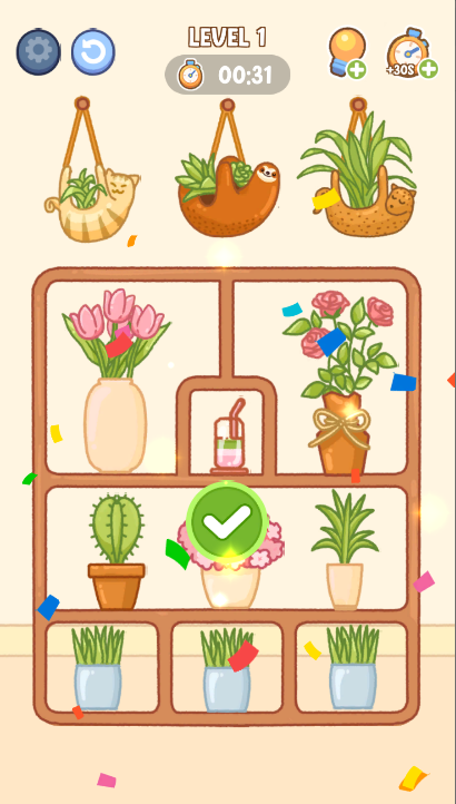 2、进入游戏后,将所有花按顺序排放好即可过关。