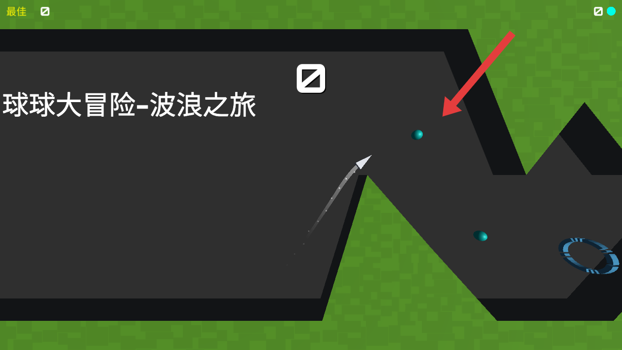 3、在波浪地形中,操控球球滚动,收集蓝色球体,跨越地形障碍,朝着终点传送环推进,挑战最佳闯关记录。