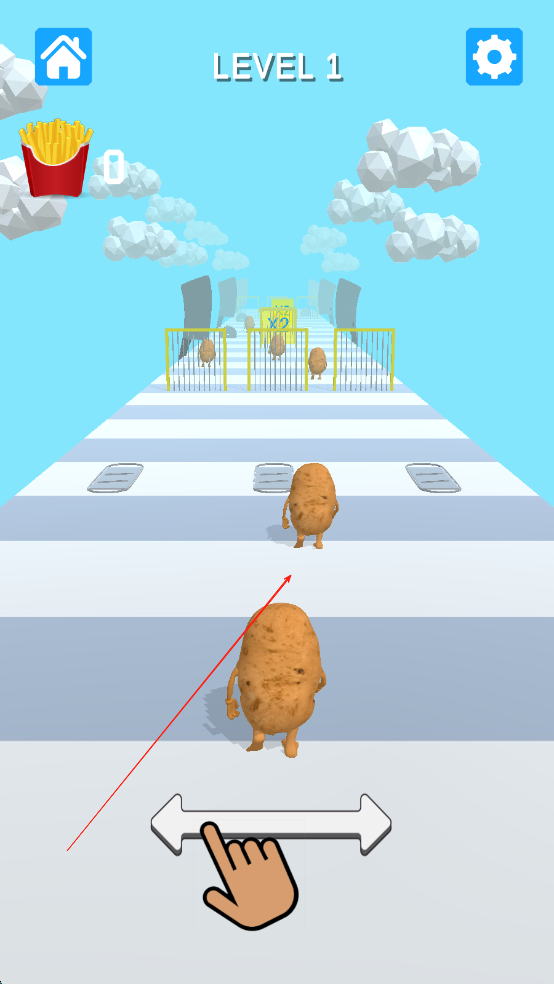 1、进入游戏选择蔬菜角色,滑动屏幕操控角色左右移动,点击屏幕跳跃躲避菜刀、滚轴等障碍,收集沿途金币与加速道具。