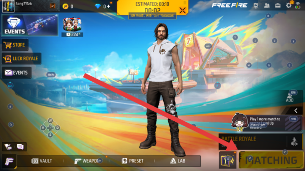 2、进入主界面,点击【MATCHING】,匹配“BATTLE-ROYALE”模式,进入大逃杀战场,准备战斗。