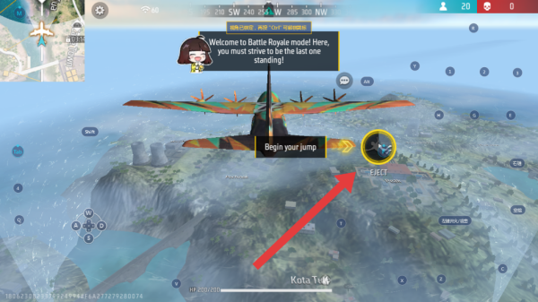 3、跳伞阶段,点击【EJECT】按钮,选择落点,开始“Battle-Royale”大逃杀,争取成为最后存活者。