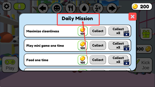 3、游戏突破传统养成模式,加入Flappy Joe、鱿鱼快跑等独立小游戏,通过多元化的娱乐方式提升角色的心情值和健康状态。