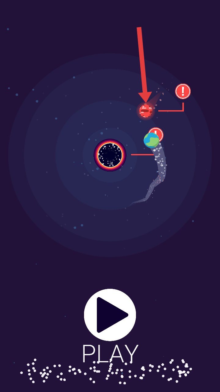 3、操控地球避开红色星球等障碍,通过点击下方【PLAY】按钮开始游戏,体验星球轨道冒险乐趣。