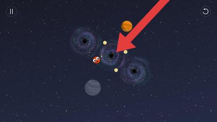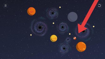1、操控红色角色,借助行星与黑洞的引力场规划路线,收集场景内光点,推进太空冒险。