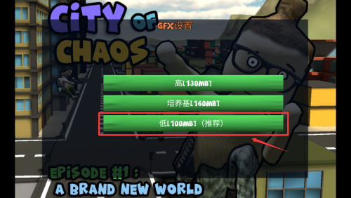1、选择红框"低[100MB]"选项,优化游戏性能。