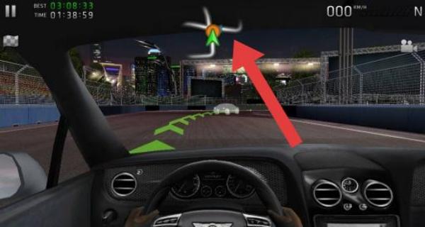 2、驾驶时跟随屏幕上方绿色箭头指示的路线行驶,按箭头方向操控车辆,确保在赛道上正确导航。