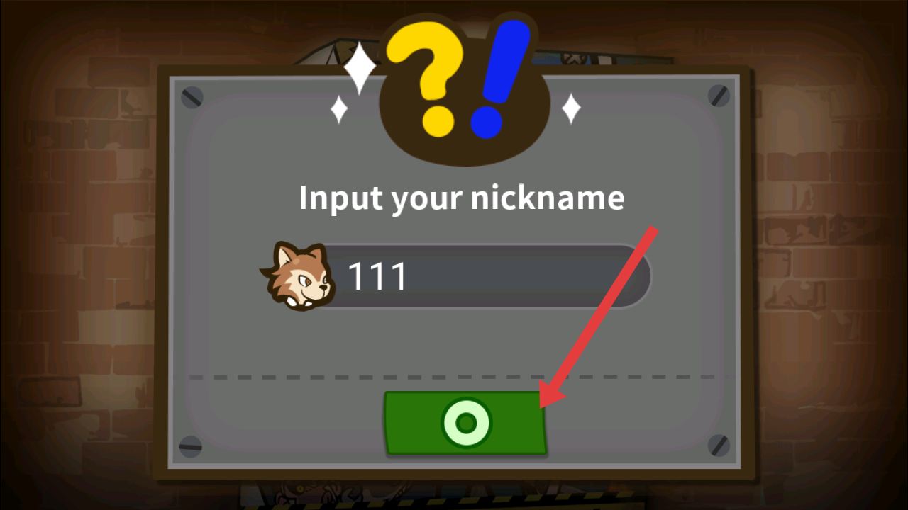 1、在昵称输入界面,输入昵称后点击绿色确认按钮,完成角色昵称设置进入游戏。