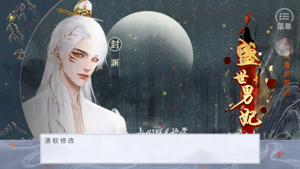 1、点击封面“盛世男妃”区域,进入游戏界面,开启角色封渊的剧情冒险。