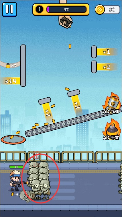 4,动态难度调节,根据玩家表现实时调整丧尸数量和强度。隐藏的"暴走模式"会在连杀时触发,带来极限射击体验。