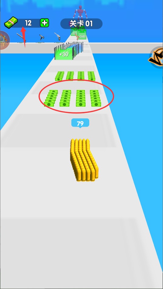 1、开局后滑动屏幕操控角色前进,顺利穿过起始区域的拱门可提升移动速度,获得属性加成。