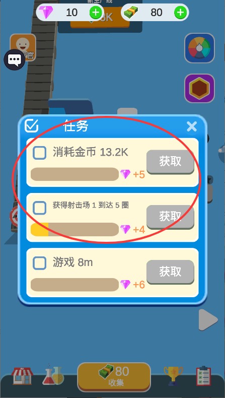 2,挑战关卡系统,完成特定射击任务可获得额外奖励。关卡难度循序渐进,考验玩家的射击技巧和经营策略。
