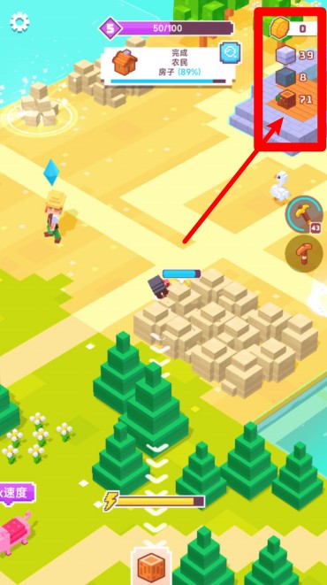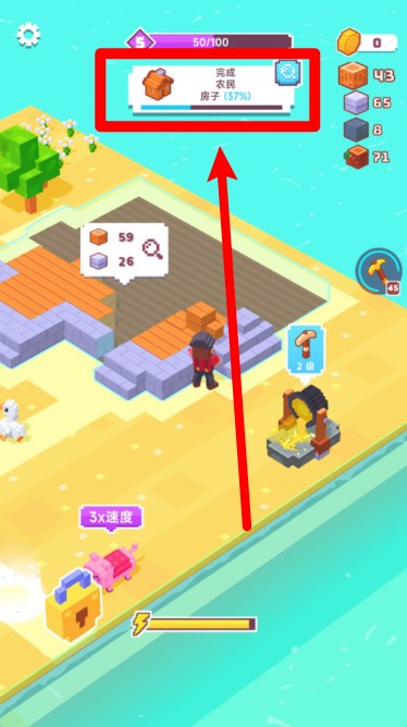 1.建筑进度提示:画面上方显示当前建筑任务及完成百分比,方便玩家随时掌握建造进度与剩余目标数量。