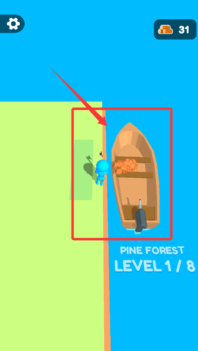 1、轻触画面启动游戏,拖拽角色移动迅速找到高价值木材进行采伐。