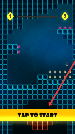 2、在翻转和跳跃阻止我的关卡页点【TAP TO START】,操控方块移动,避开粉色尖刺、红色火焰,收集钻石推进。