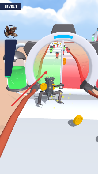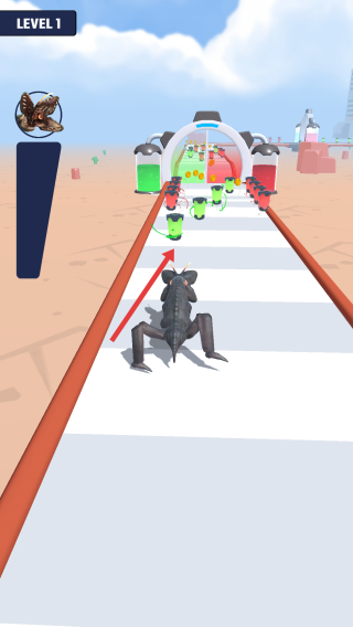 3、收集奖励:在跑道上拾取金币,通过拱门,完成关卡,提升怪物能力,解锁新关卡。