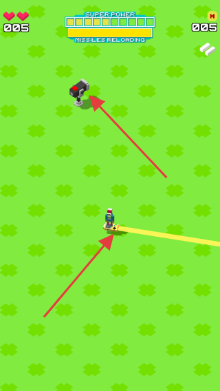 2、遇到紫色能量块时及时拾取,积攒能量解锁武器,当外星敌人出现时自动开火攻击。