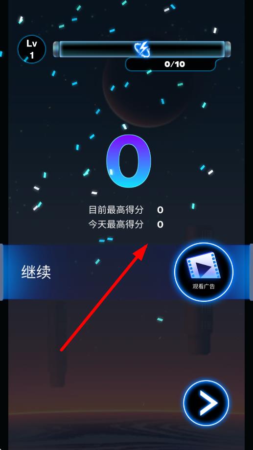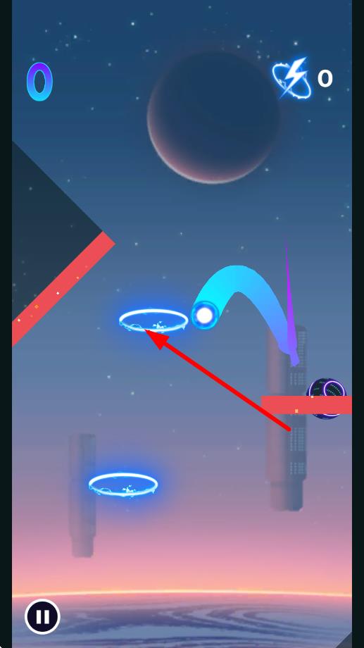 1、初入局内简洁的界面中,轻点屏幕即可左右移动赛博篮球,找准时机,让篮球跳跃翻腾,跃进力量圈来获取分数。