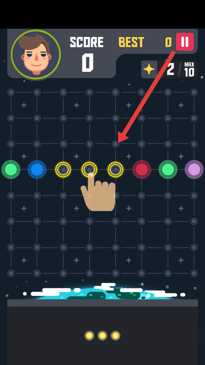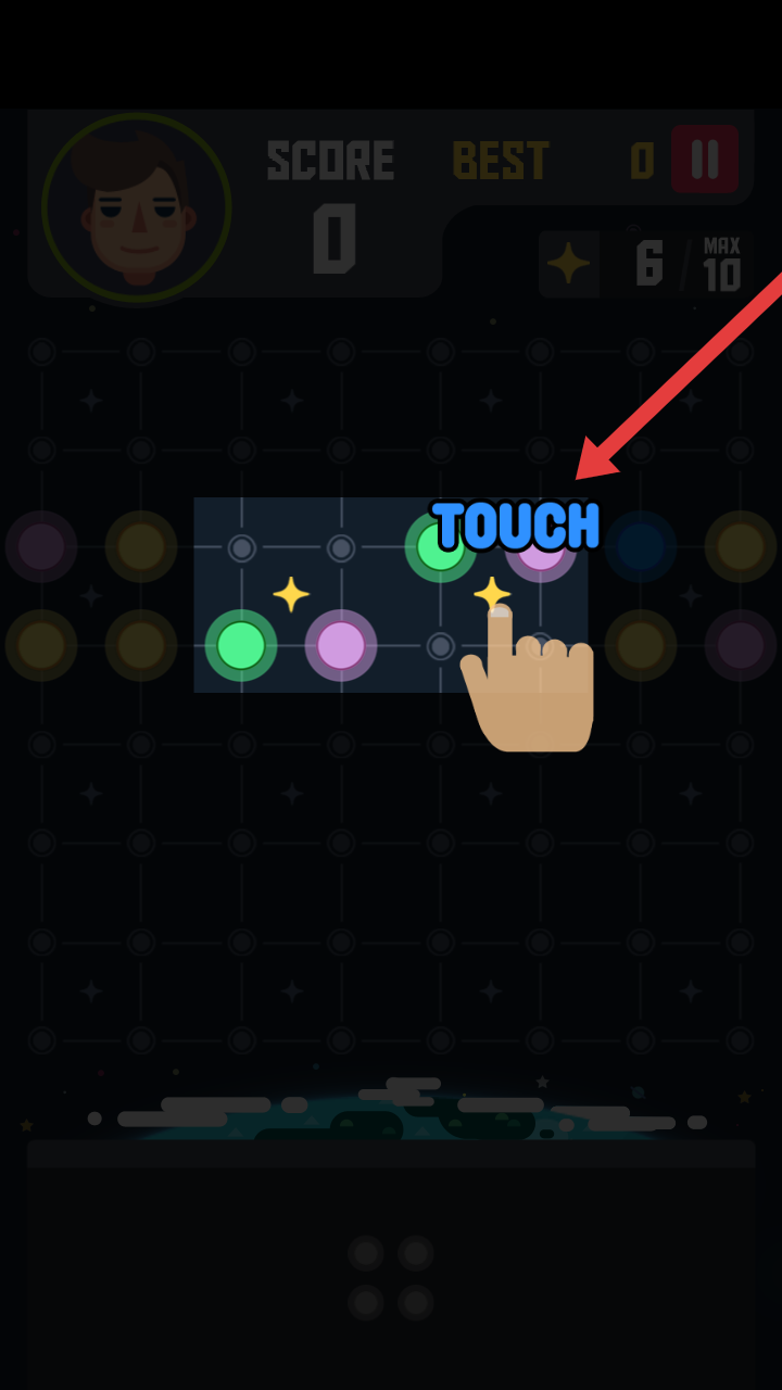 3、需要留意屏幕的系统提示,点击标有【TOUCH】区域内的星星,收集彩色圆环,推进关卡进度。