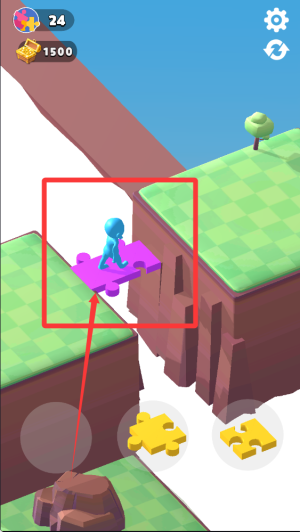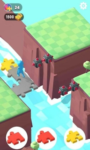 1、玩家需要根据关卡提供的拼图板块,通过点击选择合适的拼图并将其拖动到正确位置,搭建出完整的过河桥梁。
