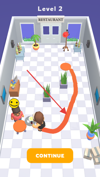2、传菜中途遇到突然跑过的小朋友,迅速滑动屏幕绕开障碍,同时稳住托盘防止菜品洒出,继续冲向目标餐桌。