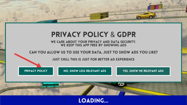 1、在隐私政策弹窗,选【YES,SHOW MERELEVANT ADS】或其他选项,确认后进入游戏。