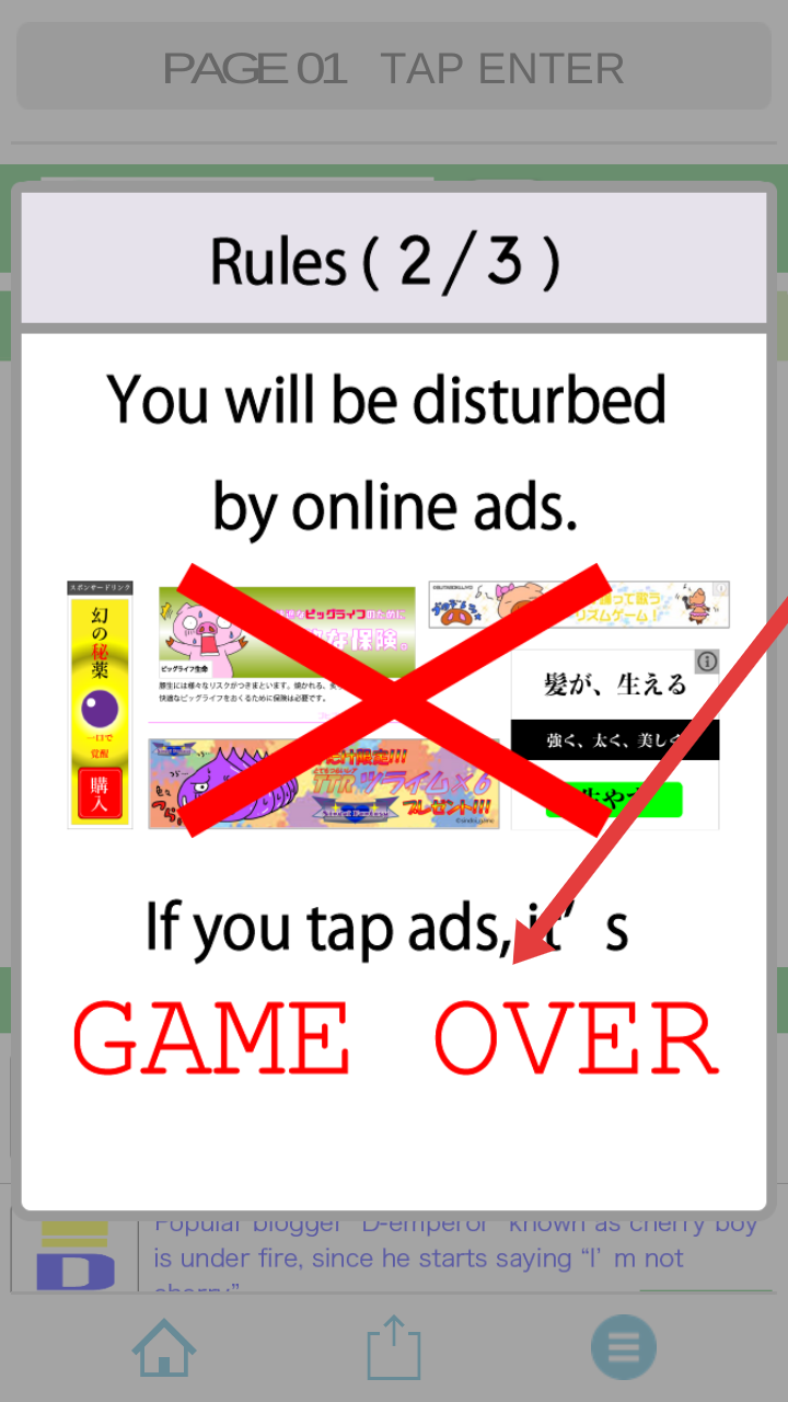 3、留意规则提示(Rules2/3),游戏中会出现在线广告干扰,切勿点击广告,否则触发【GAME OVER】,专注核心操作完成挑战。