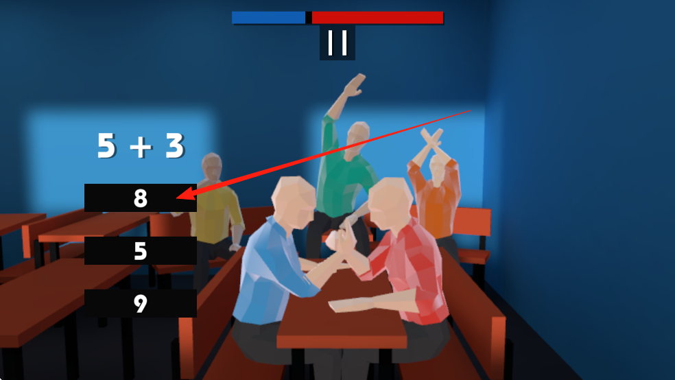 1、观察题目难度与对手状态,优先规划答题路线,通过精准运用数学知识与策略,巧妙答对题目,确保高效获得摔跤力量优势。
