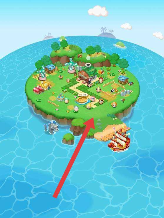2、在岛屿界面,按箭头指引,点击岛屿区域,探索岛屿,解锁建筑和角色,推进游戏进程。