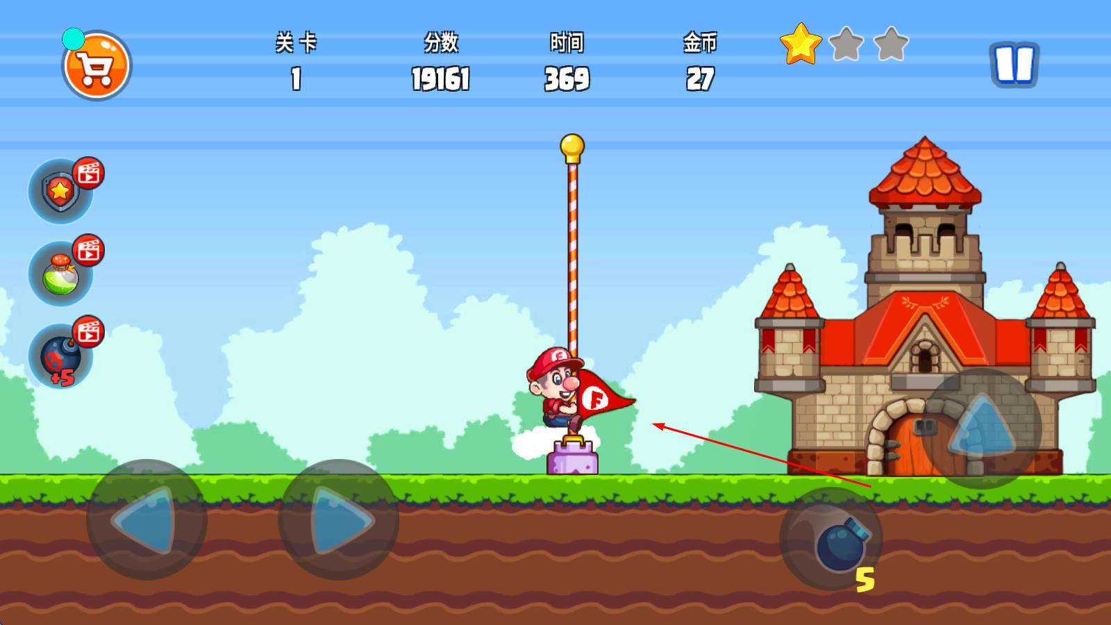 2、冒险途中,利用移动按钮灵活走位,适时按下射击按钮,发射榛子子弹,击退超级邪恶的怪物,法人别忘了吃掉蘑菇等神奇物品,借此让鲍勃变强。