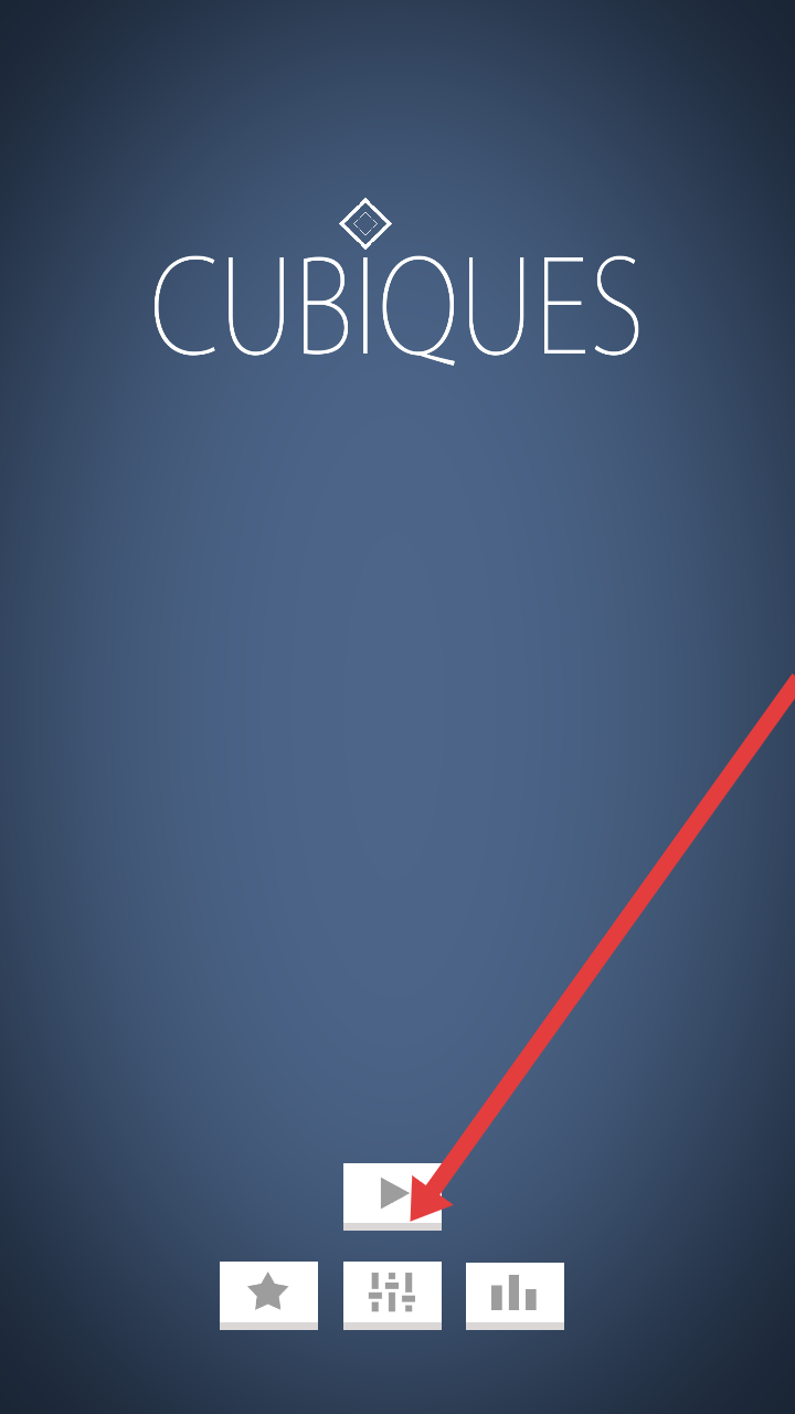 1、进入立方迷宫游戏的主界面,点击底部中间的播放按钮,启动CUBIQUES的空间解谜冒险。